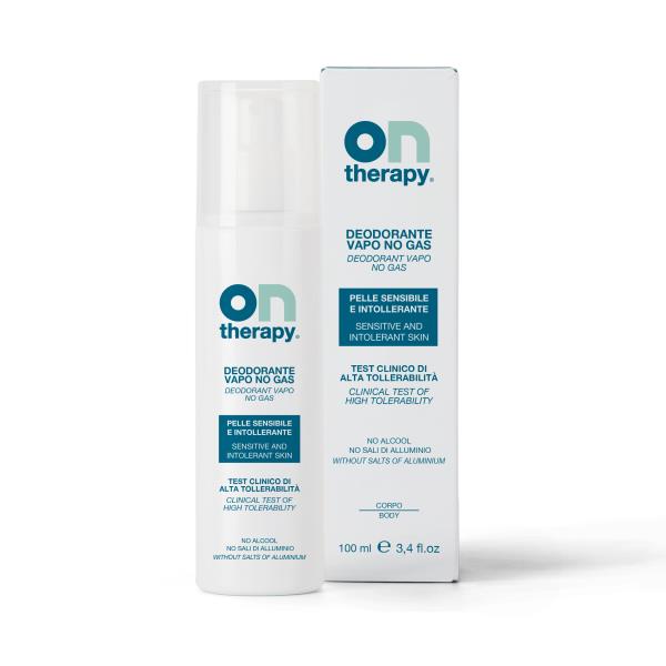 Ontherapy® Deodorante VAPO NO GAS dalla texture acquosa ad alta tollerabilità testata sulla pelle sensibile e intollerante.